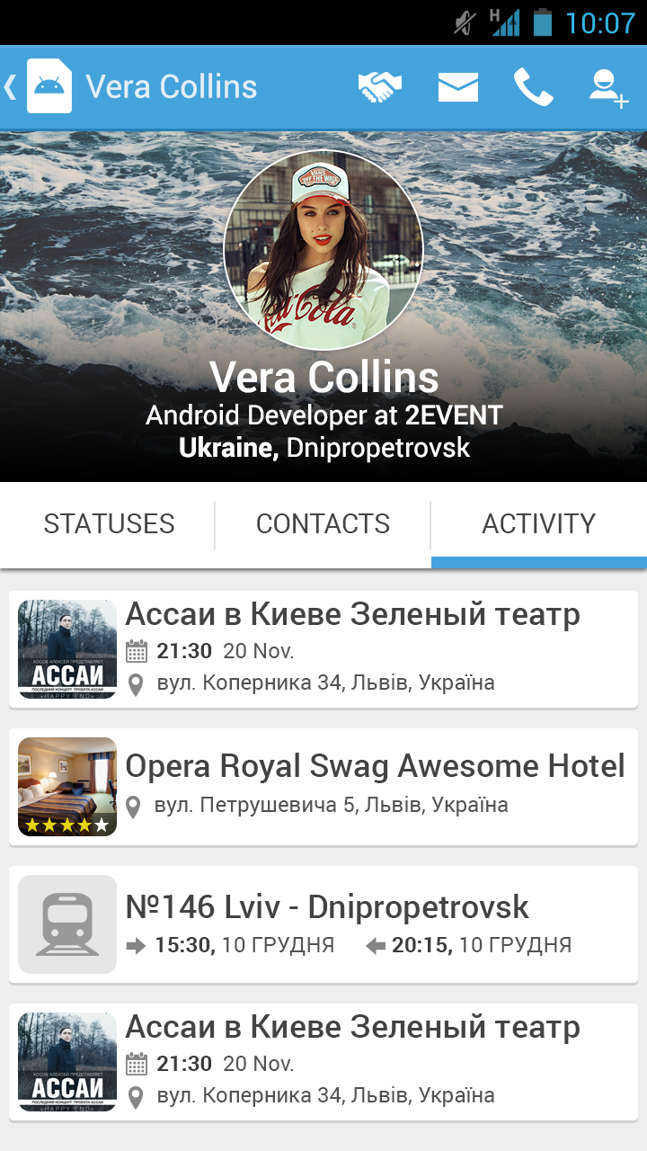 In the end of the event You’ll have not a pack of paper cards and the question :"Who are these people and what are we talk about?" But detailed information about each participant and notes about the meeting in your smartphone.